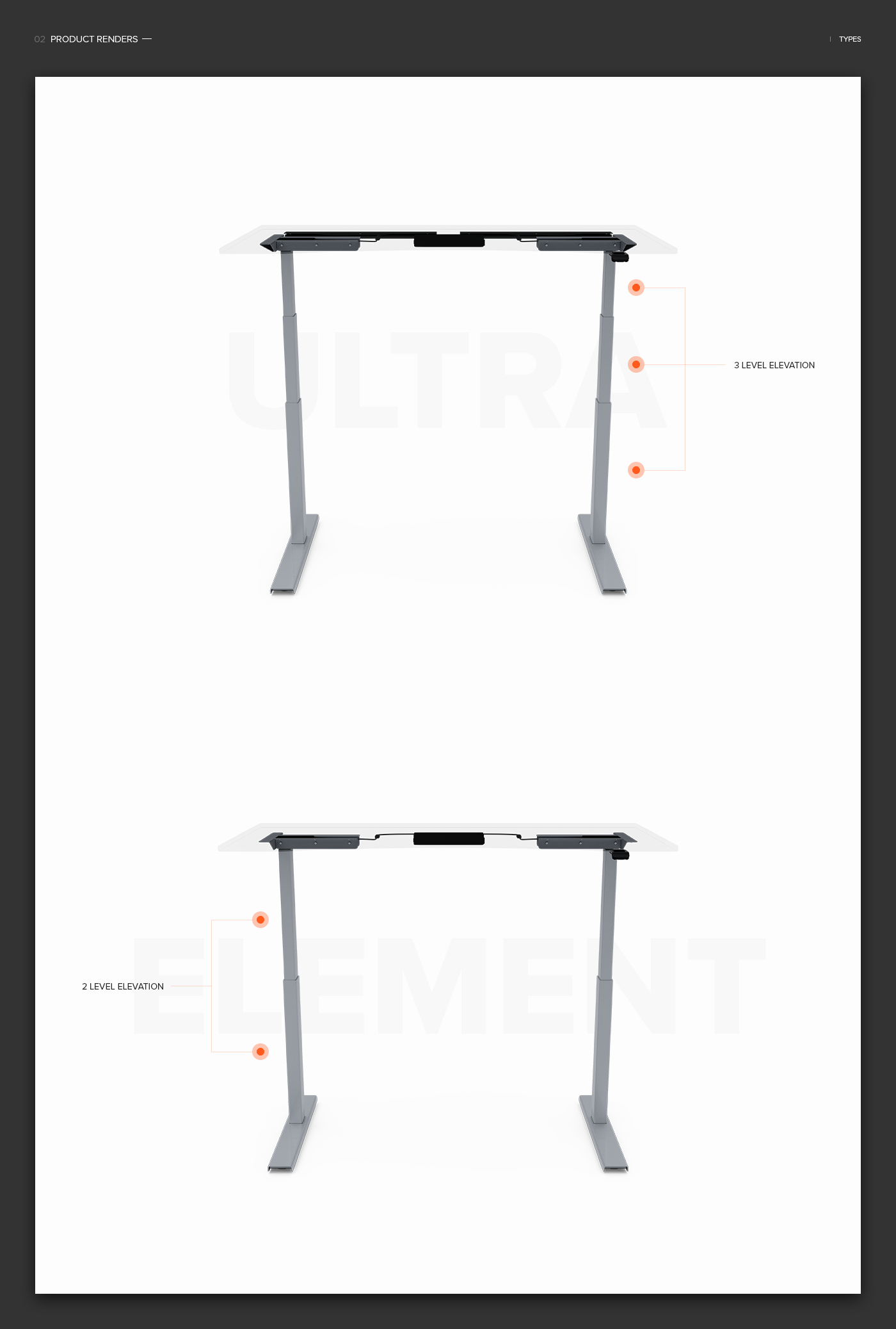 UpDesk is a leading brand supplying top performers with the highest quality adjustable standing desks and ergonomic accessories available. We were commissioned to 3D model and render all their desks to fit within their new brand guidelines.